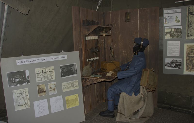 Cette année, à l’occasion de la journée portes ouvertes du 44ème RT, l’association a présenté pour la première fois, la reconstitution d’un poste d’écoute de la région de Verdun. Daté de 1915, il se situait dans le secteur d’Apremont.