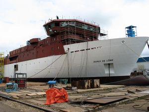 Le bâtiment lors de sa mise à l’eau le 27 mars 2004.